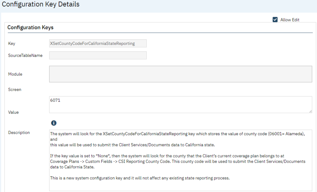 If you receive reports that the county showing in the CARE Act Reporting Document is incorrect, check the configuration key “XSetCountyCodeForCaliforniaStateReporting”. This was setup during your implementation and should match your 5-digit FIPS county code (minus any leading zeros).