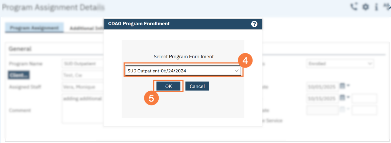 - In the CDAG Program Enrollment window pop-up, click the drop down and click to select the appropriate program.