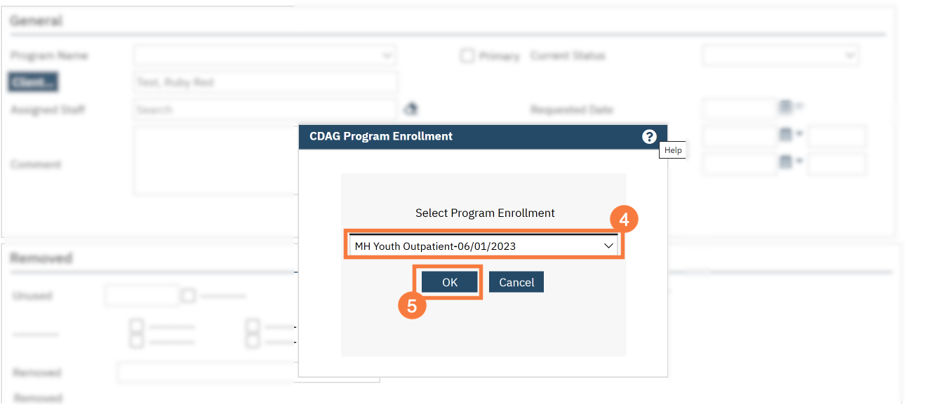 - In the CDAG Program Enrollment window pop-up, click the drop down and click to select the appropriate program.