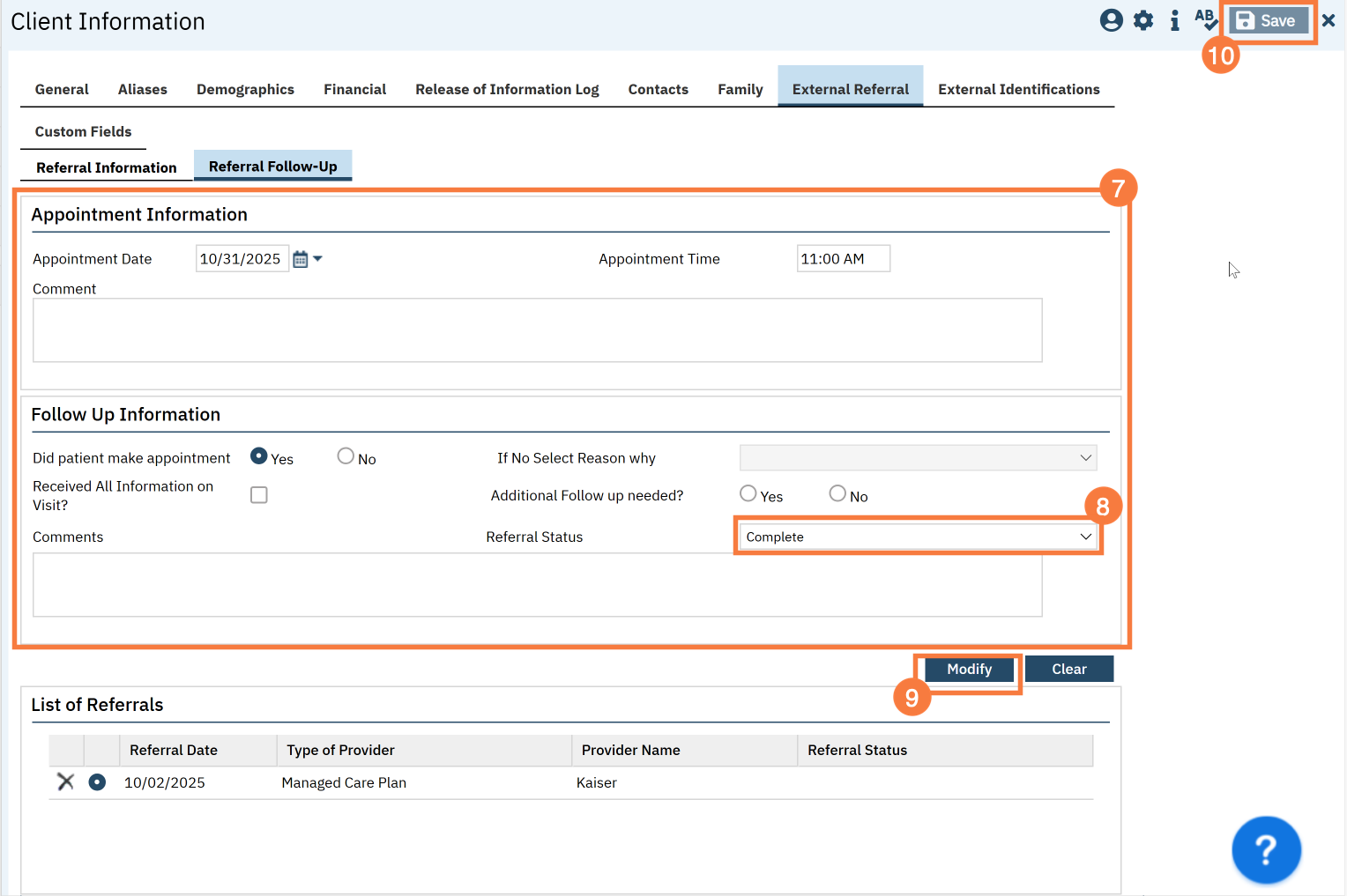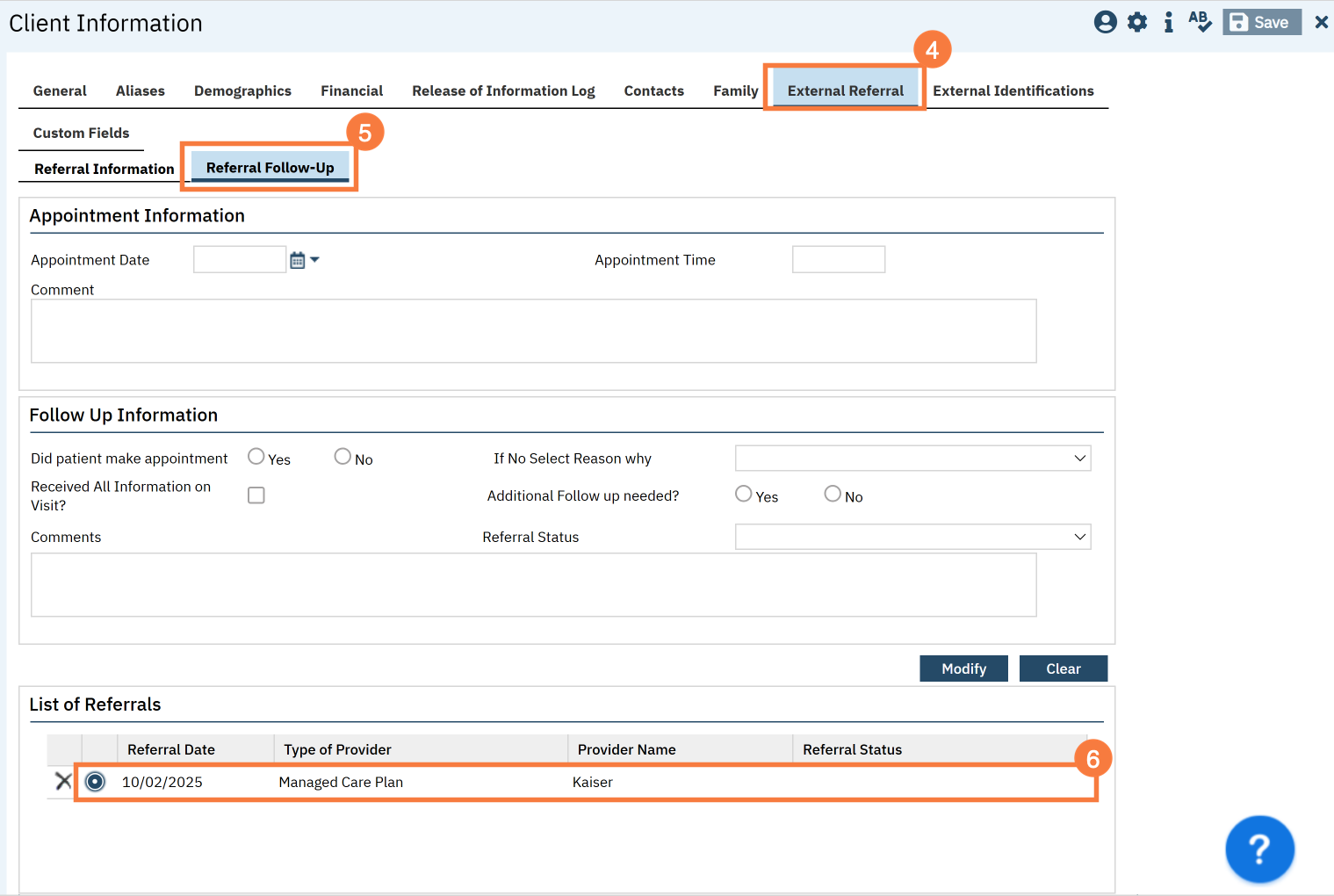 - Navigate to the “External Referral” tab.