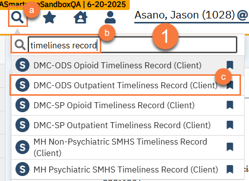 - With the client open, open the appropriate Timely Access document. (see above for the specific names). In this example, we’ll use the DMC-ODS Outpatient Timeliness Record document.