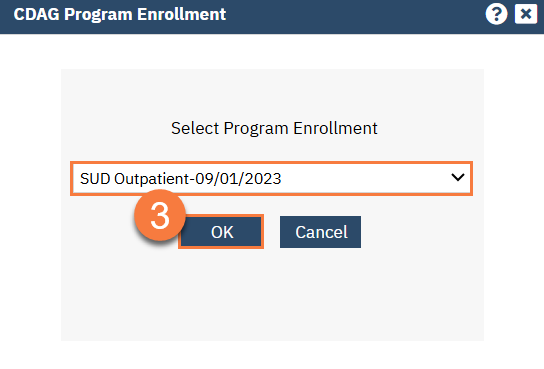 - A CDAG window will pop up. Select the program you’re tying this record to and click OK.