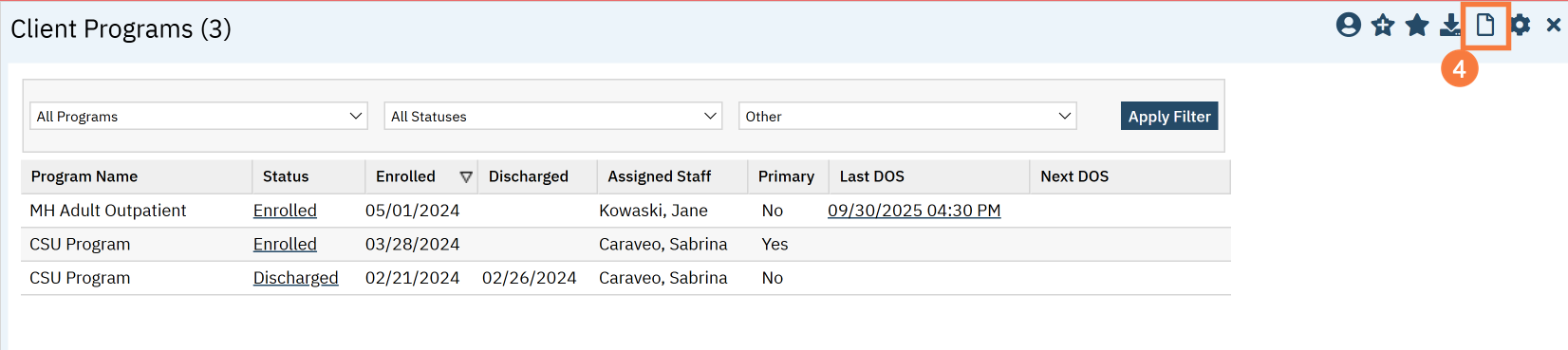 - This takes you to the Client Programs list page. Click on the “New” icon.