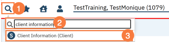 - To document the referral in SmartCare, you must first have the client open, then click the Search icon.