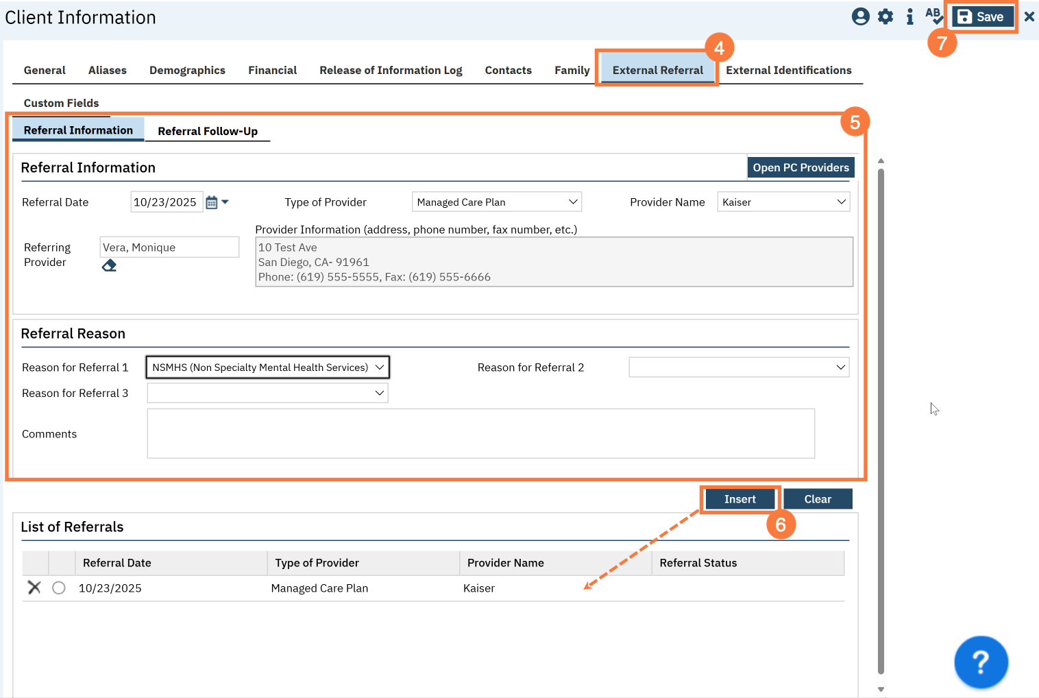 - Navigate to the “External Referral” tab.