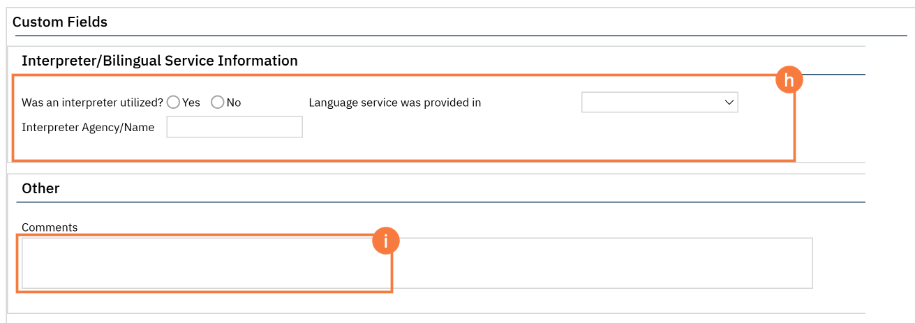 - In the Custom Fields section, enter Interpreter and Language information if applicable.