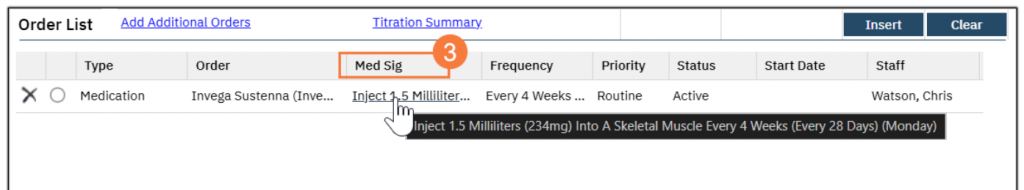 - The Order List now has a new column titled Med Sig, which does display a layman’s order sig. If you hover over it, it will show you the entire Sig.Â