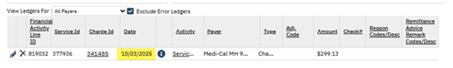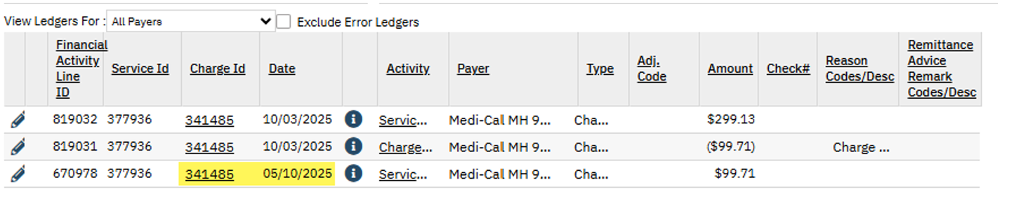Important: If your county uses the Contract Provider Charge Export, and filters by Charge Creation Date, the regenerated charge will only appear in exports that include 05/10/2025. It will not appear when filtering for 10/3/2025.