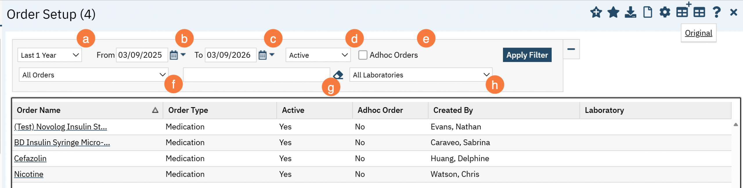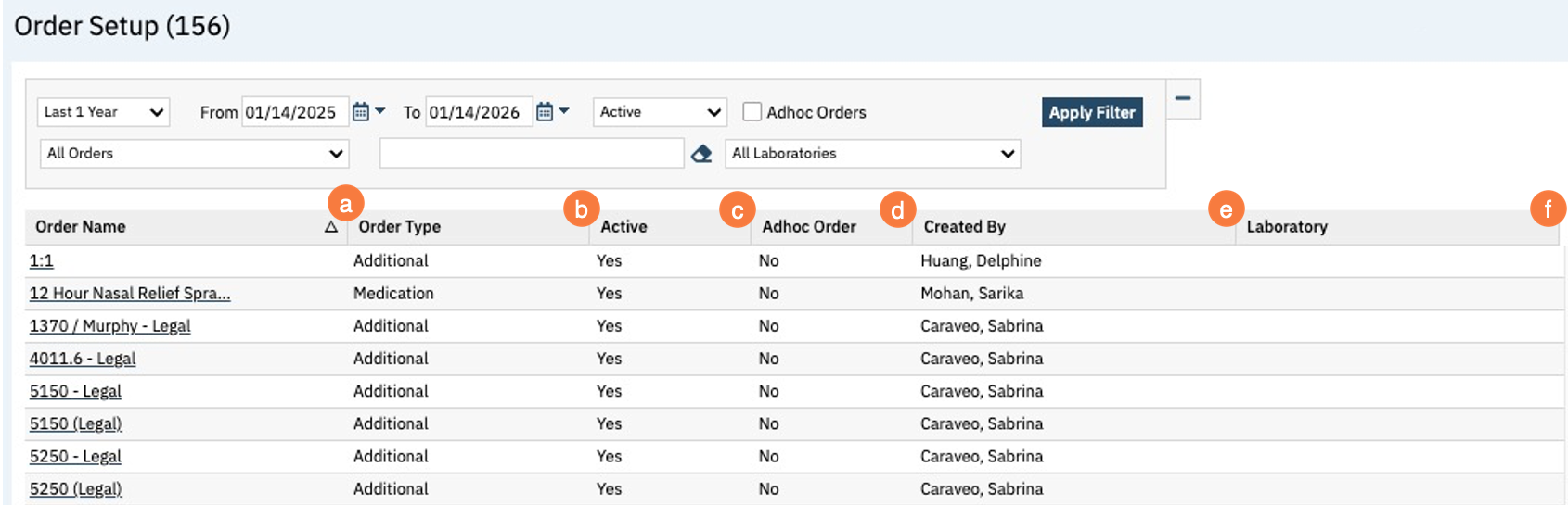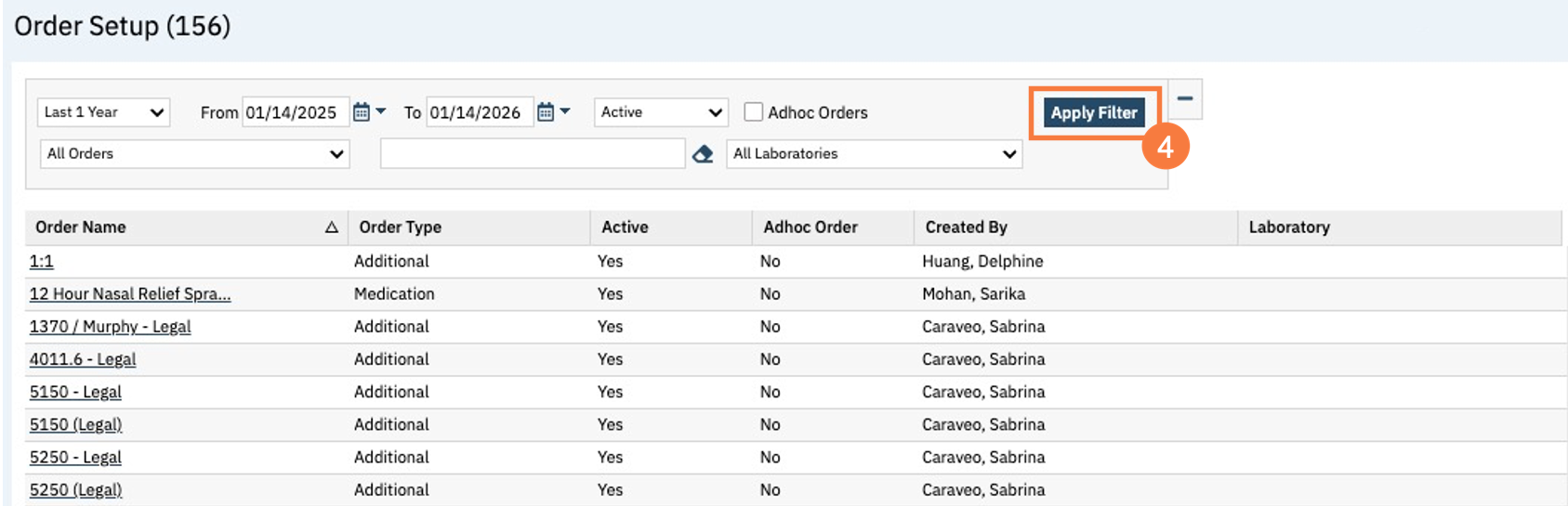 - This will bring up the Order Setup (Administration) list page. Filter as needed and click Apply Filter.